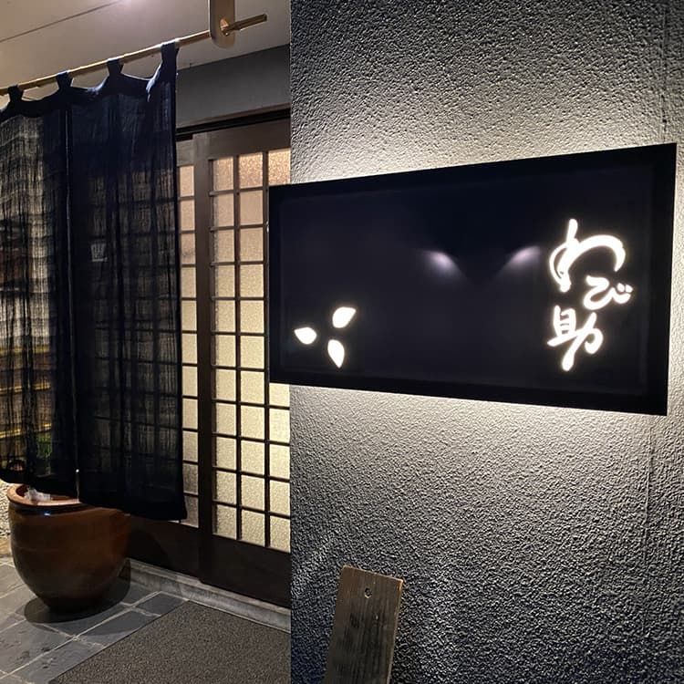 駅前の喧騒を抜けた閑静な住宅街の一角に「わび助」はございます。女性スタッフのみで営業を行う当店は、きめ細やかなおもてなしの心とサービスを持ってお客様をお迎えいたします。県内外の作家が手掛けた酒器や器、四季の移ろいを感じる生け花など隠れ家的な当店で上質なひとときをお過ごしください。
